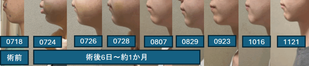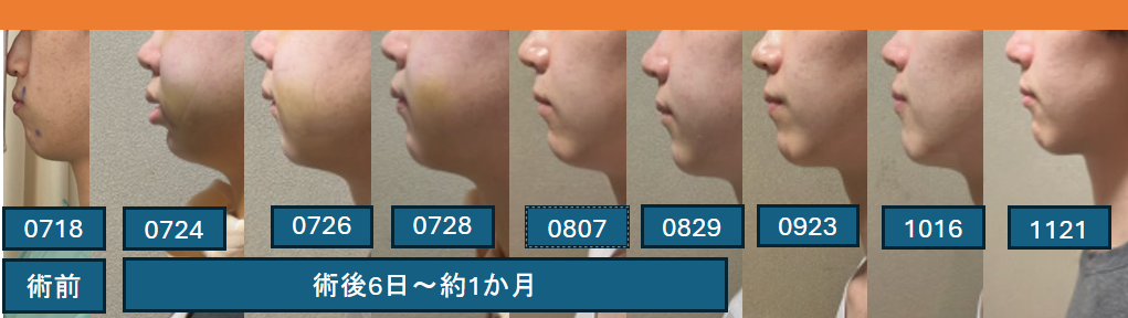 あまり変化はないものの、たるみは多少は増えたと感じます。開校治療のために顎を挙上したため、術前に比べると皮膚が余ってしまうのです。これにより、術後腫れが引いたときには、術前に比べるとたるみが出現することがあります。