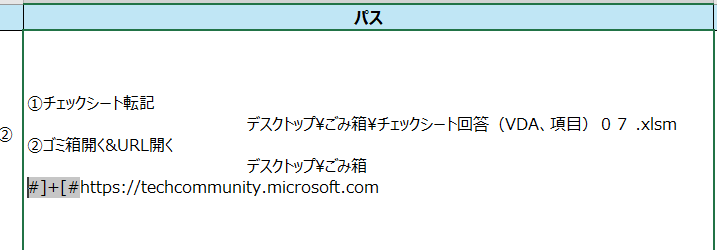 ②ゴミ箱開く&URL開くを選択した場合、パス列に入った「#]+[#」で文章が区切られ、記載されたごみ箱フォルダとURLそれぞれのパスが開かれます。