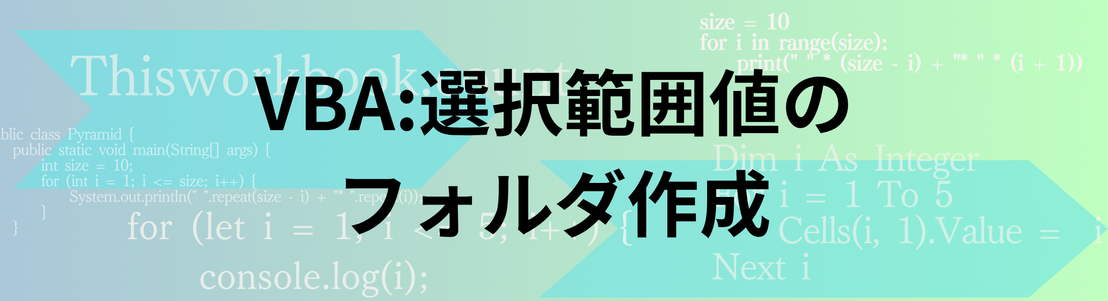 選択したセルを対象にフォルダを作成します。通常のセルループで問題となるのが結合セルですが、すべての選択セルに対応できるようにしています。