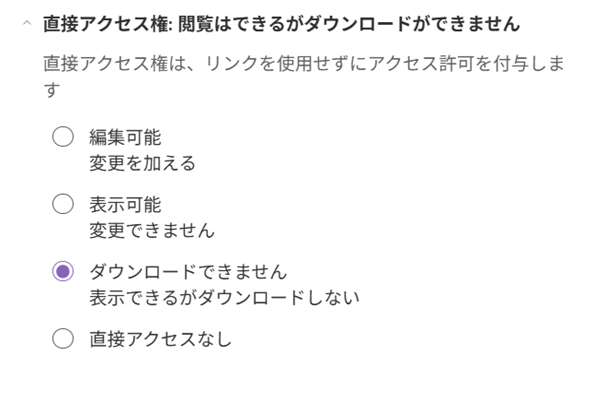 あなたがチームの権限者であれば、sharepointから各ファイルのアクセス権限設定が可能です。編集制限の他、ダウンロード不可も設定でき、特定の社員のみのアクセスと万が一のダウンロード漏洩も防げます。
