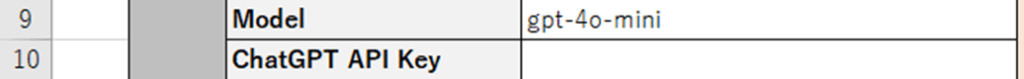 モデル及び、APIKeyInfoシート下記部分に記載してください。