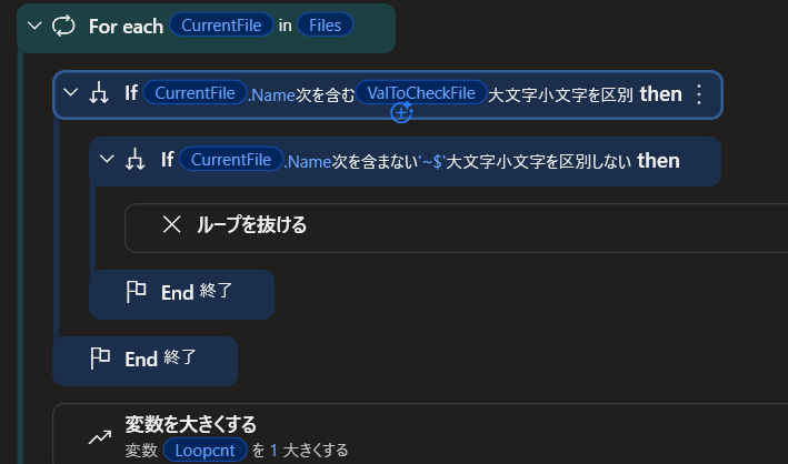 これにより、「一番最後のファイルを指定して操作」のようなこのフローを応用したフロー作成が可能です。