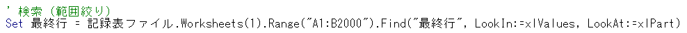 今回の記録表では、最終行に「最終行」というkeywordがあることを想定し、判定しています。記録表の最終行が分かるkeywordがあればそれに置換え、無ければendメソッドで取得してください。
