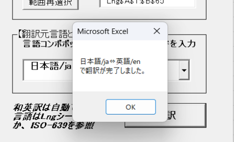 VBA:選択範囲を選択言語で一括翻訳マクロ